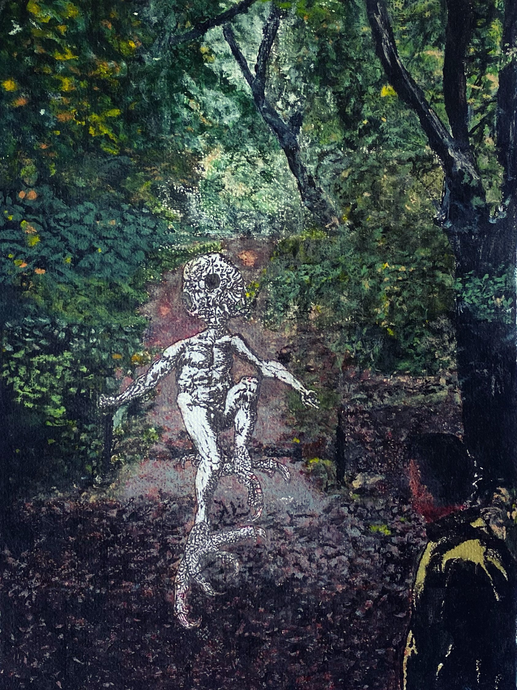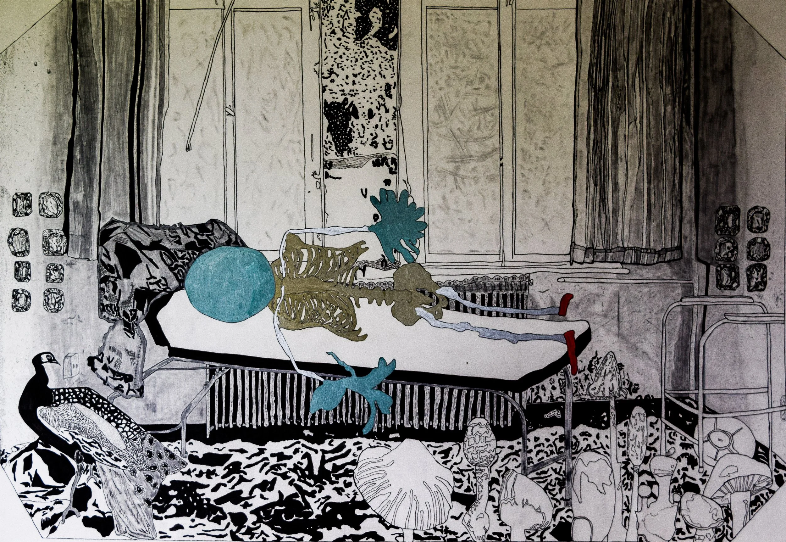 'Creature in room 264', mixed media drawing, on A2 paper, 2020