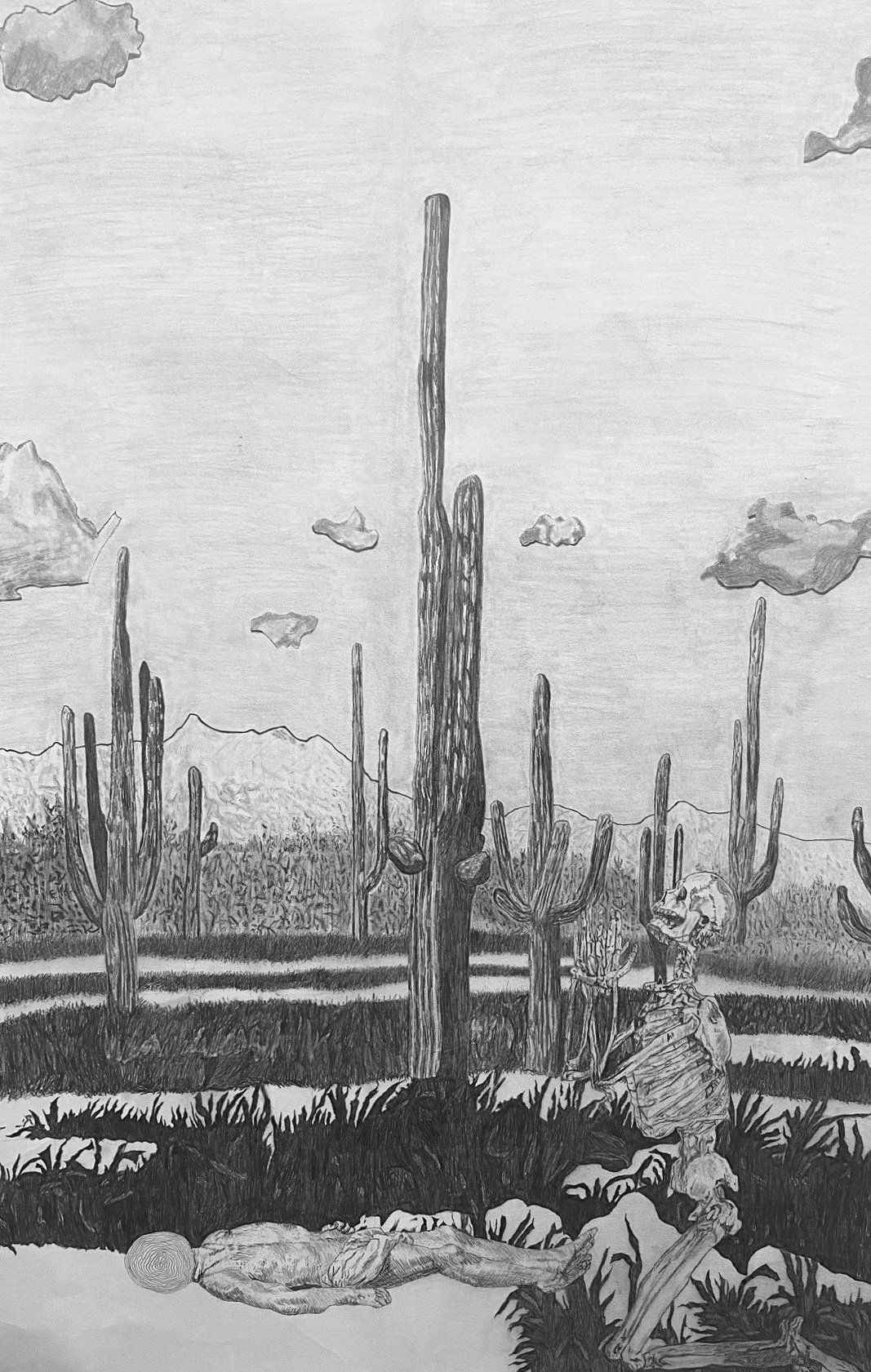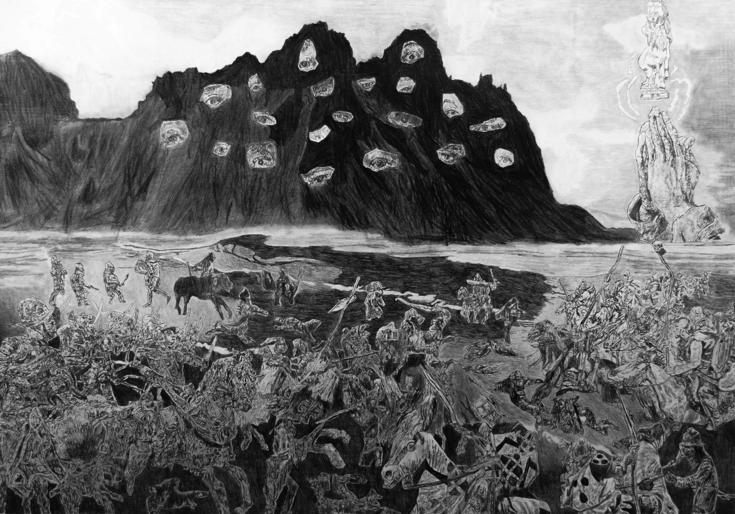 'Deathly Saviour' pencil drawing (840cm(h) x 591cm(w) 2023