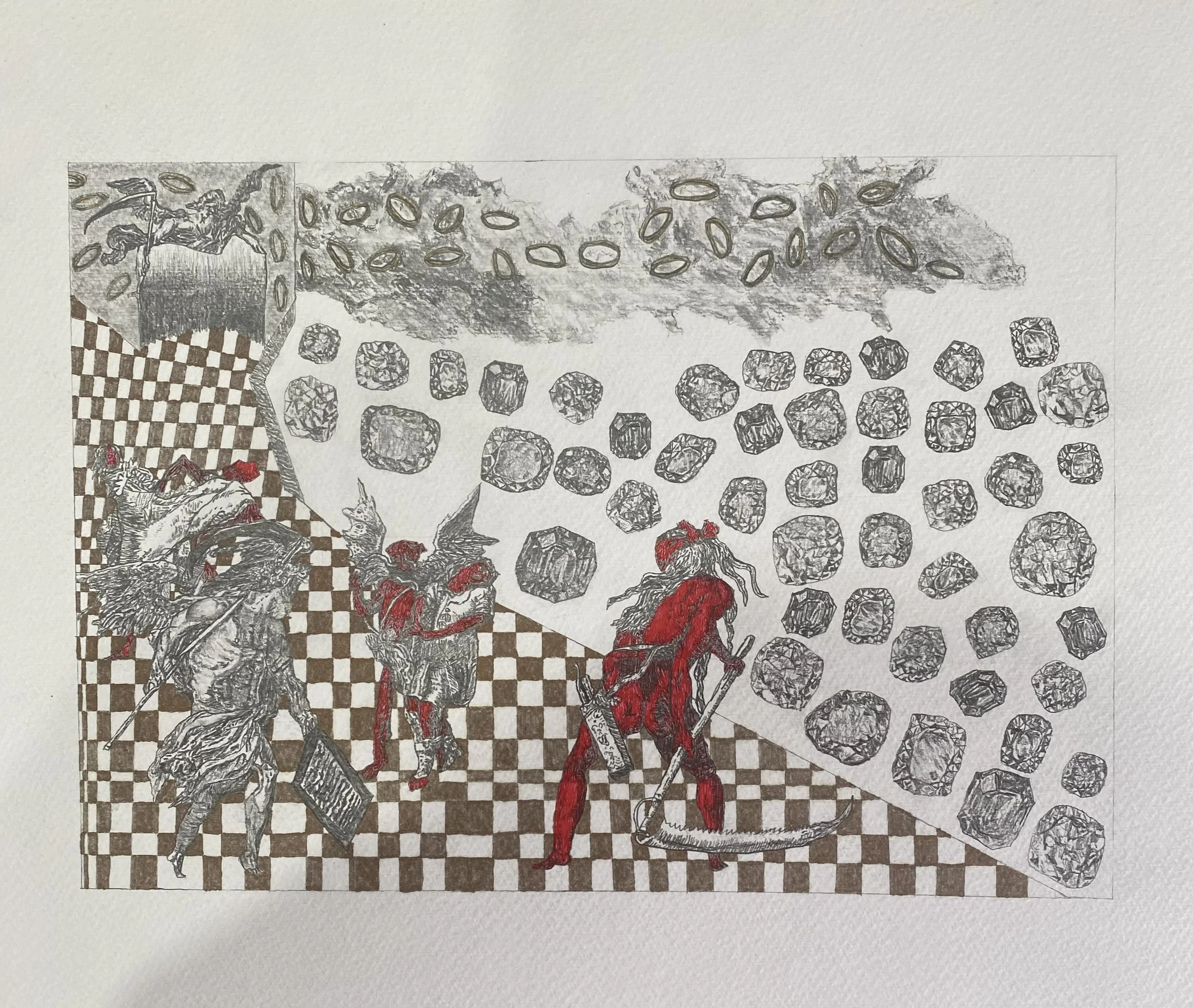 'The Start of Chaos', mixed media drawing, A2 paper (300gsm) 2022