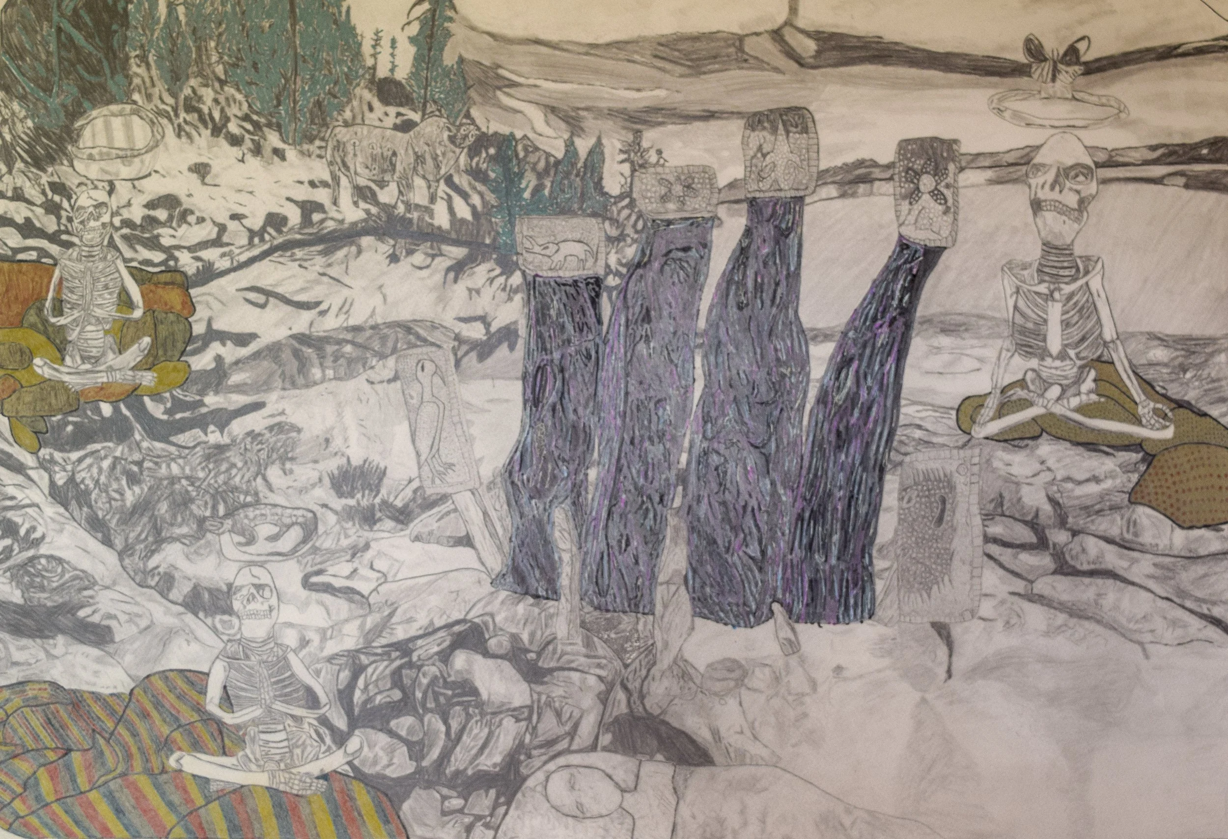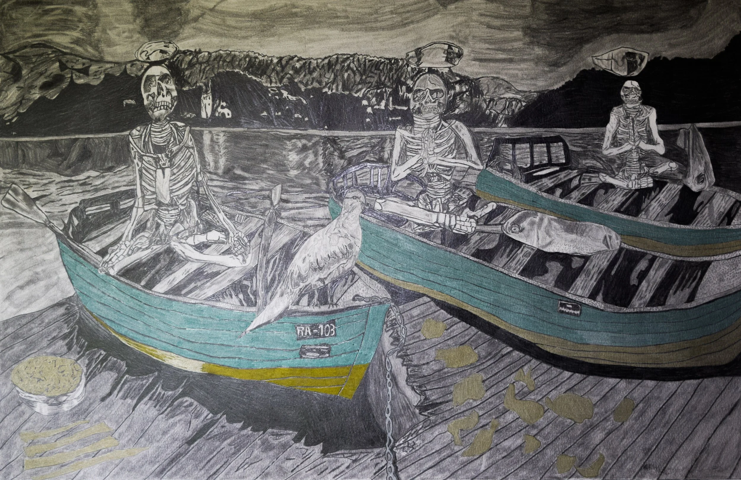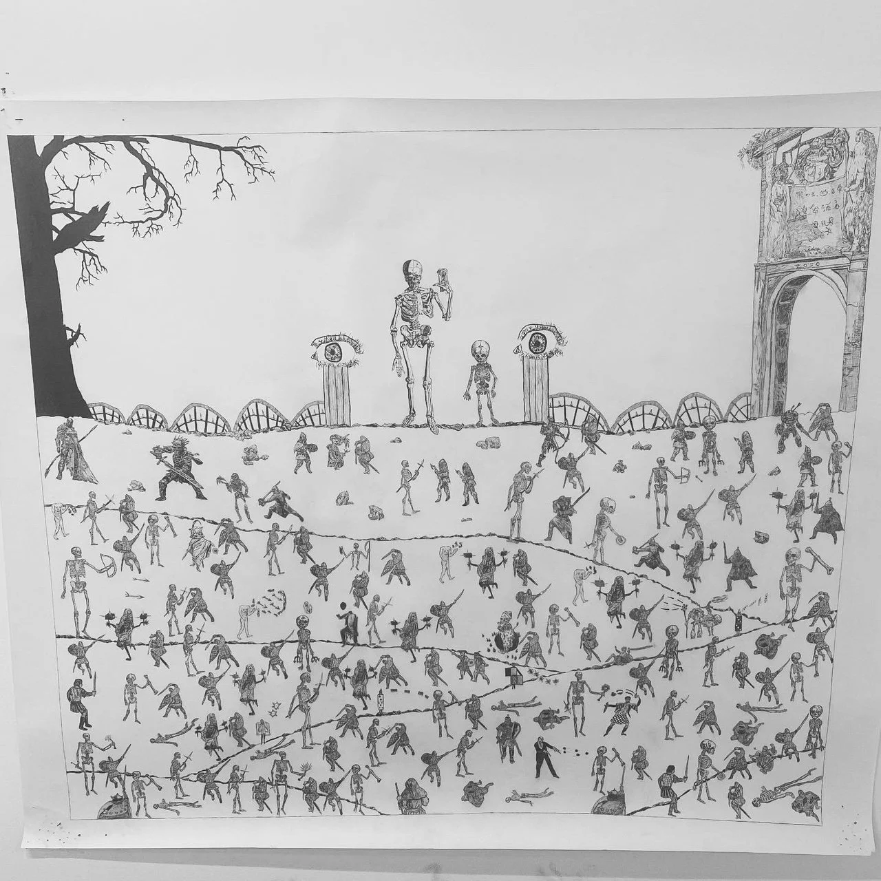 'The Skeleton Gang' mixed media drawing, A2 paper (250gsm), 2020