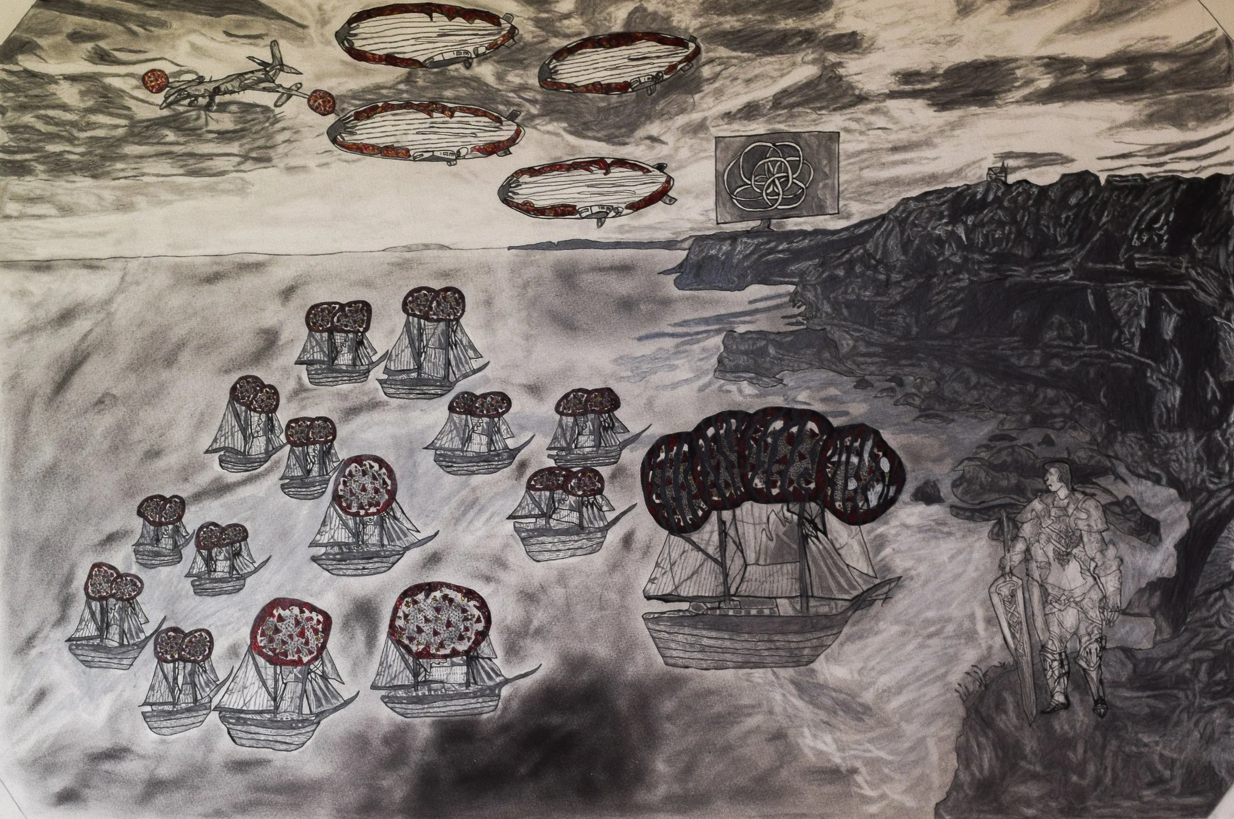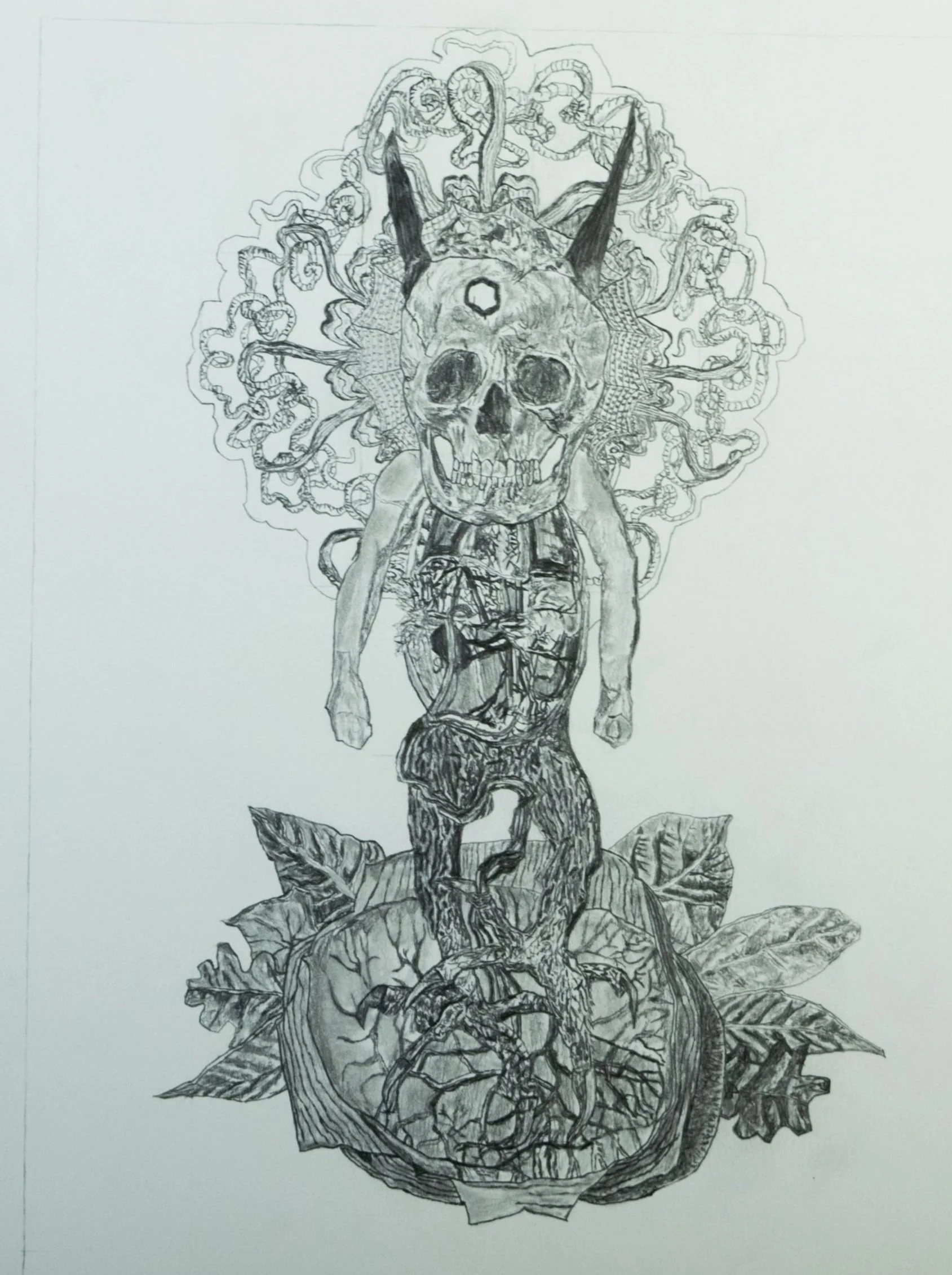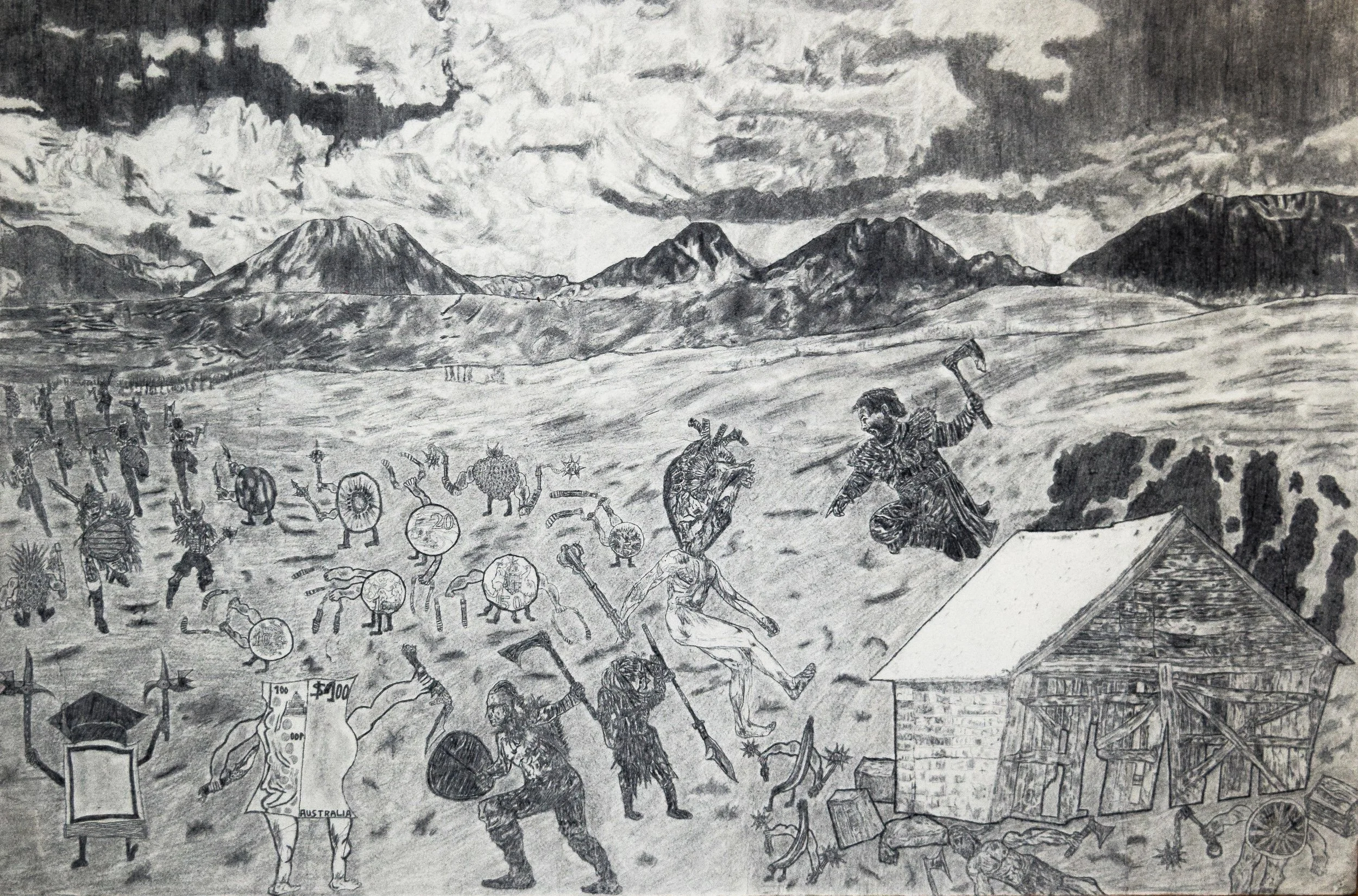 'Facing Evil', pencil drawing on A3 paper, 2023