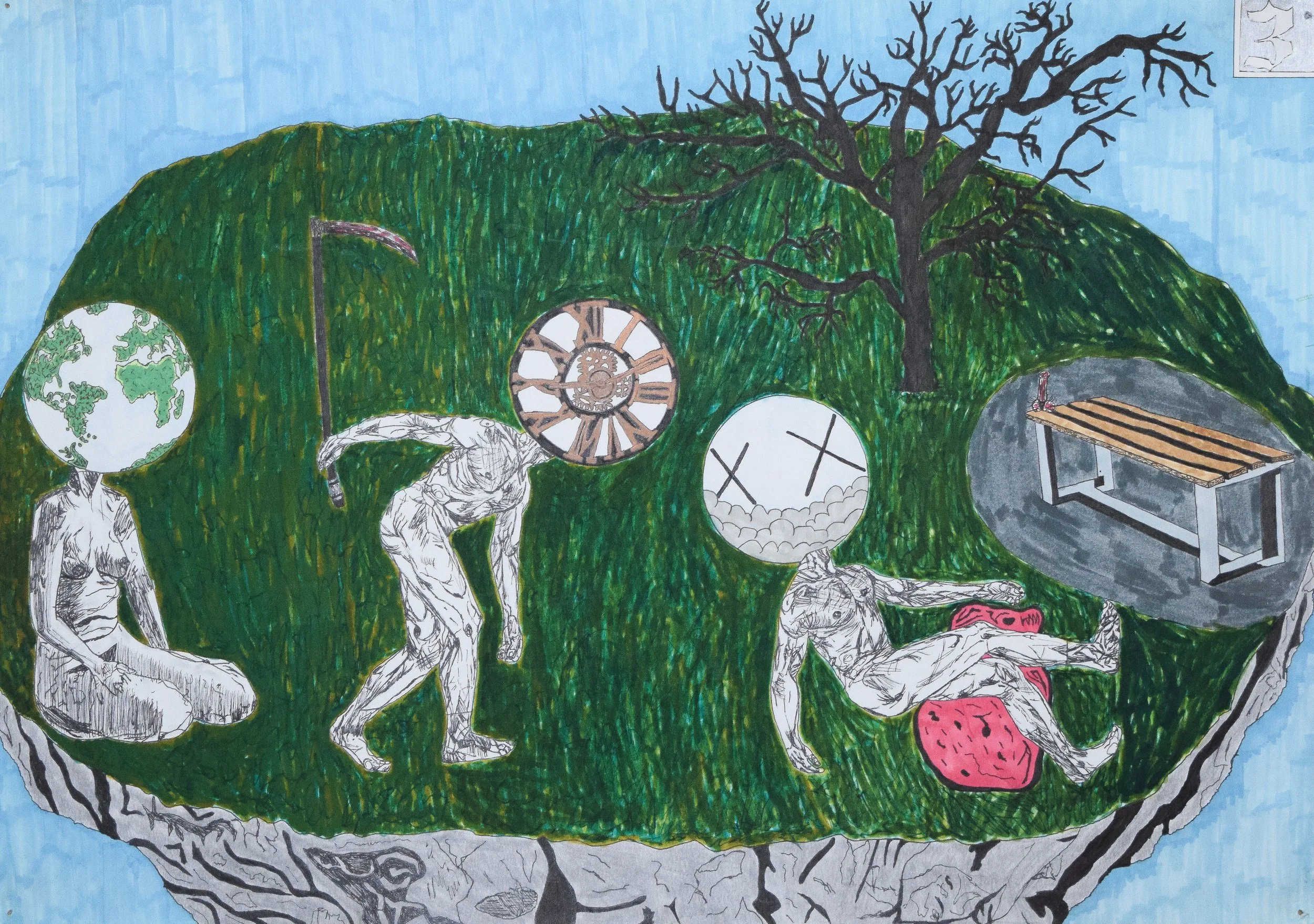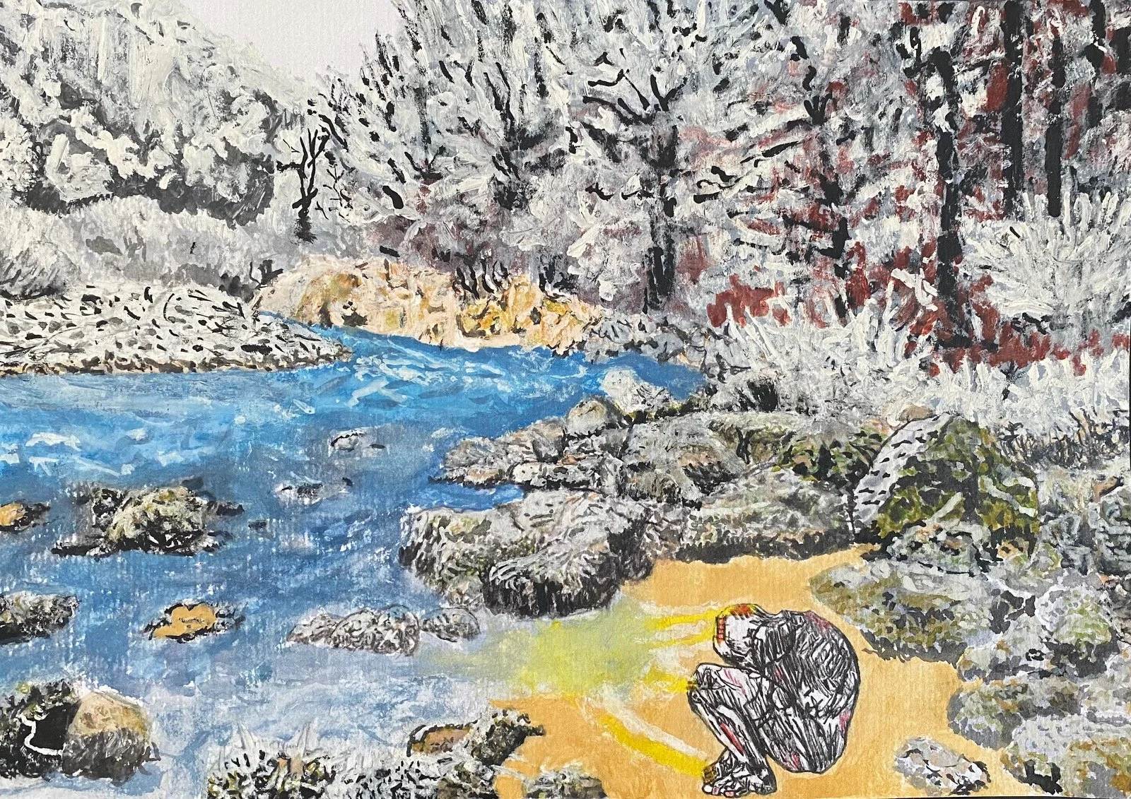 'A new beginning', mixed media drawing on A3 paper (2023)