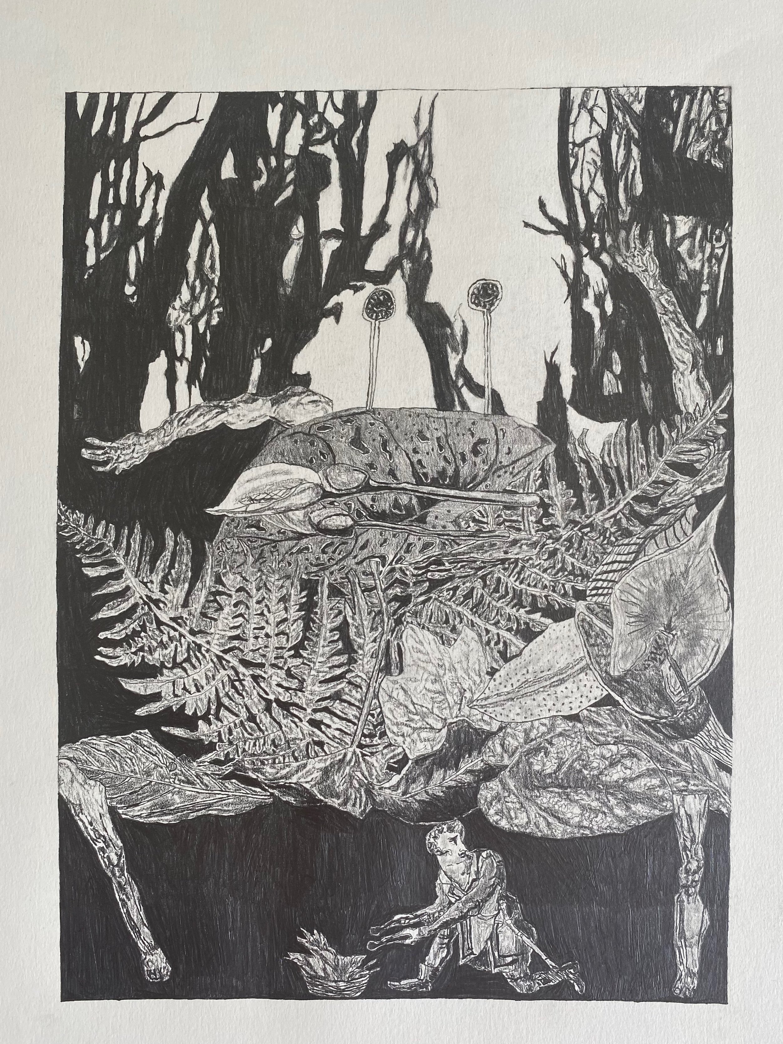 'Myth Story', mixed media drawing on A2 paper (250gsm) (2022)