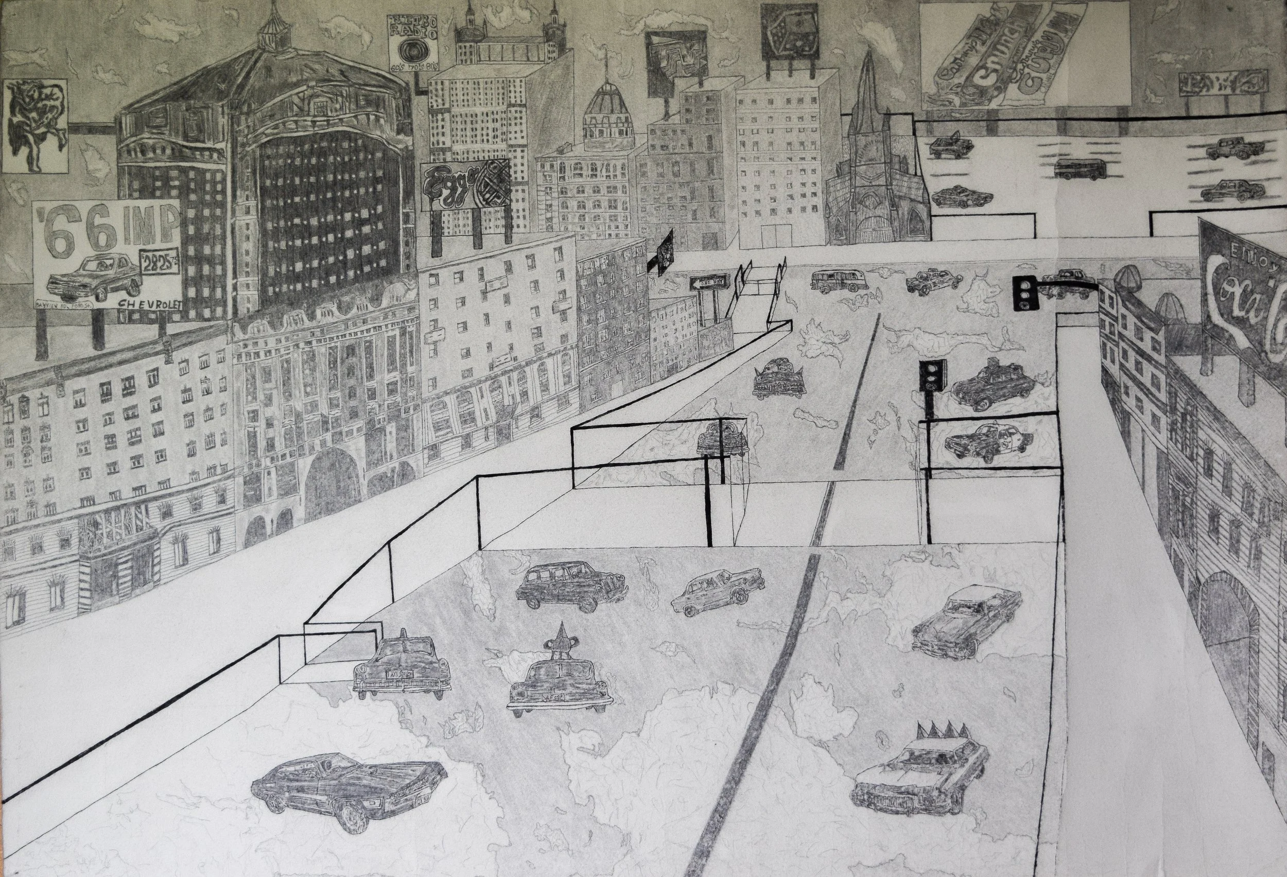 'Futuristic City', pencil drawing on A2 paper (300gsm) (2023)