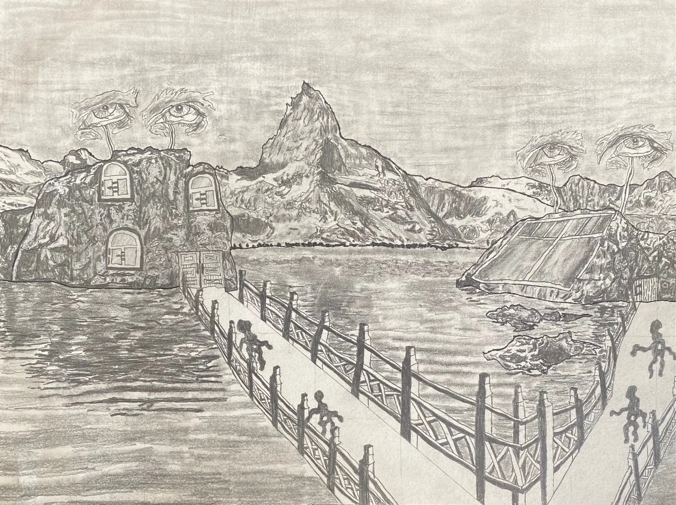 'Mirrored Landscape', pencil drawing, A2 paper, 300gsm 2020