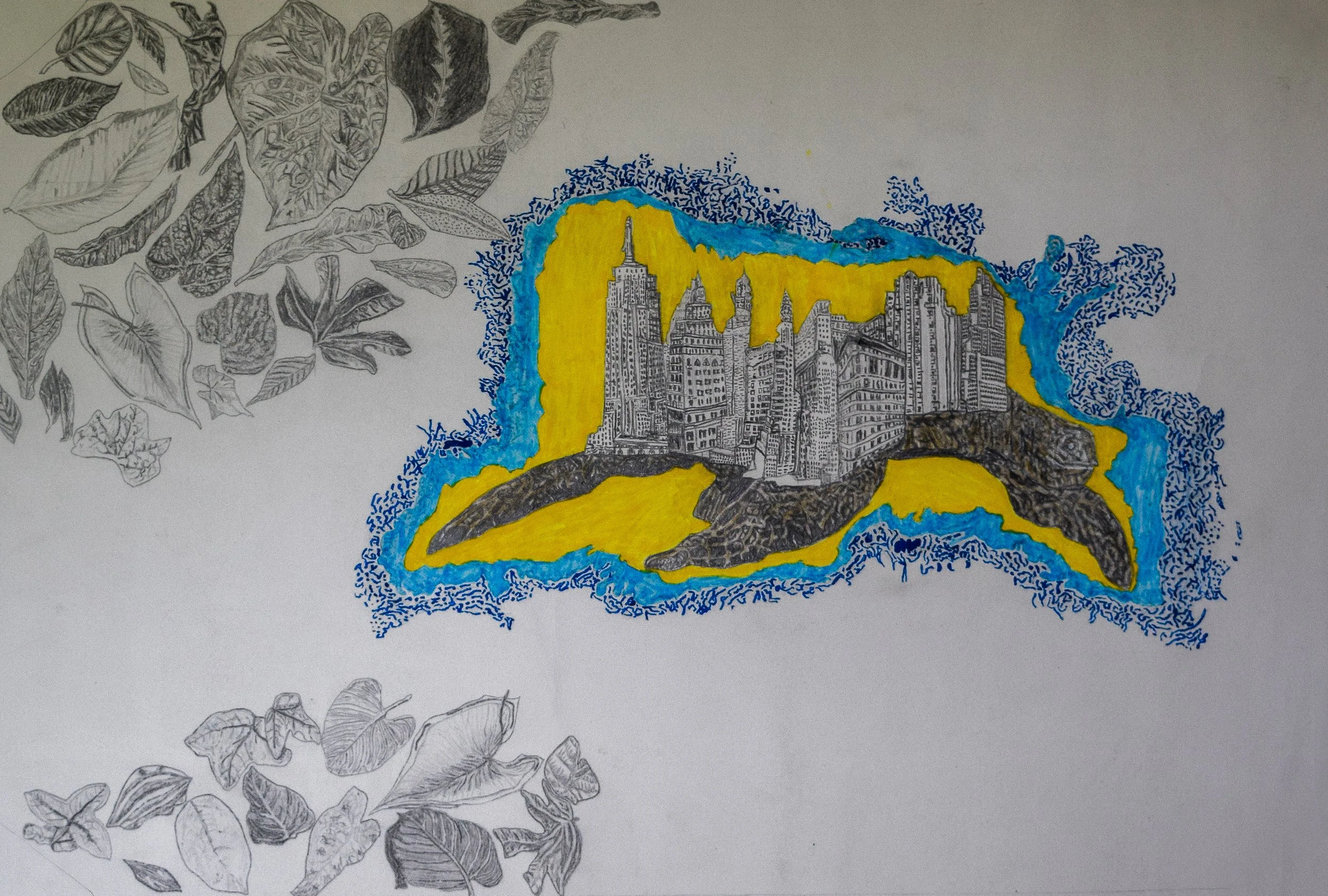 'Turtle City', mixed media drawing, A2 paper (250gsm) 2020